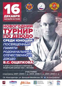 16 декабря 2018 г. состоится Новогодний турнир по дзюдо среди юношей, посвященный памяти родоначальника отечественного дзюдо В.С. Ощепкова в рамках 4-го этапа 2-го Клубного рейтинга Федерации ДЗЮДО ЗАО г. Москвы.