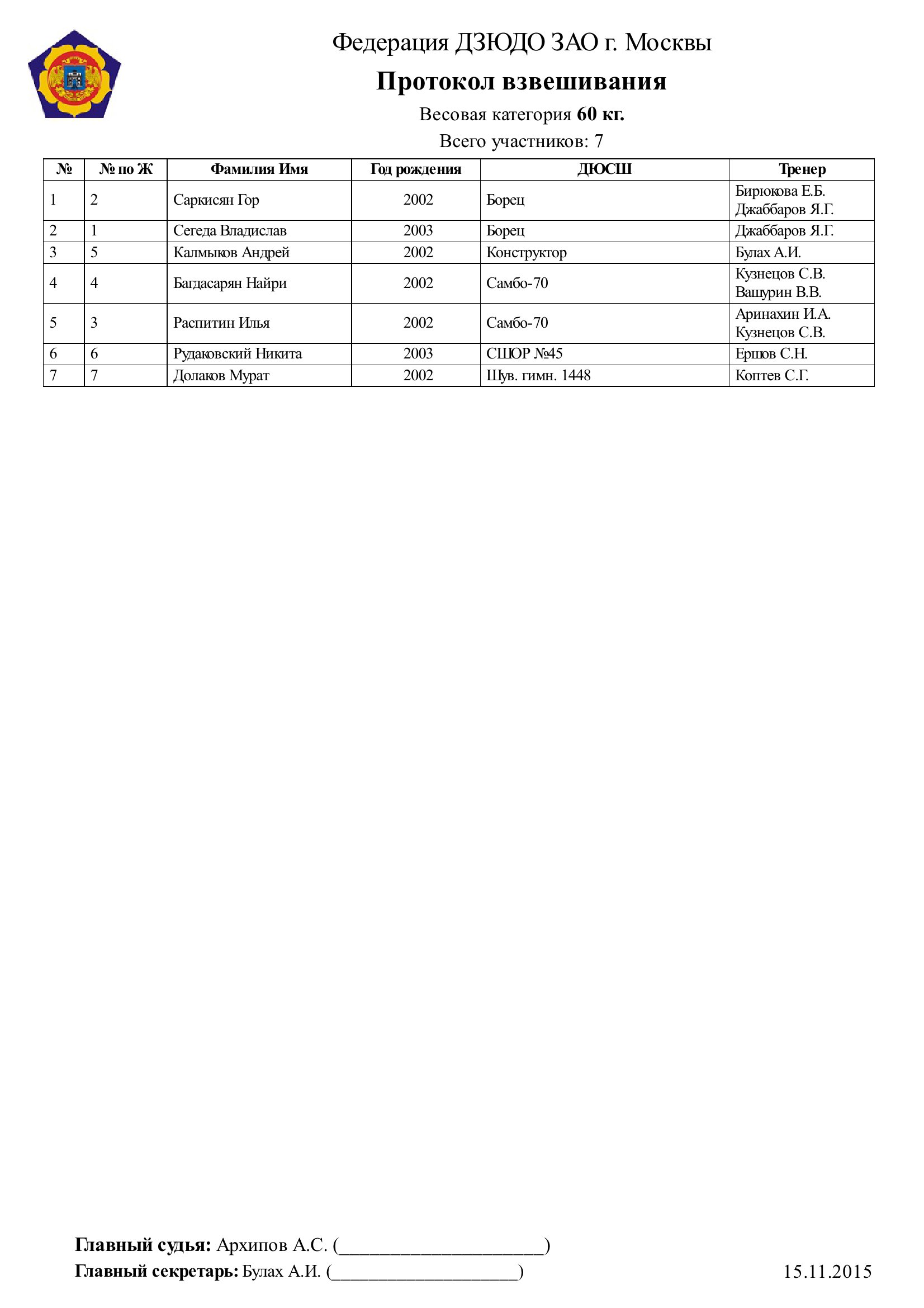 15 ноября 2015 г. Открытое первенство ЦФКиС им. Хруничева М.В. |