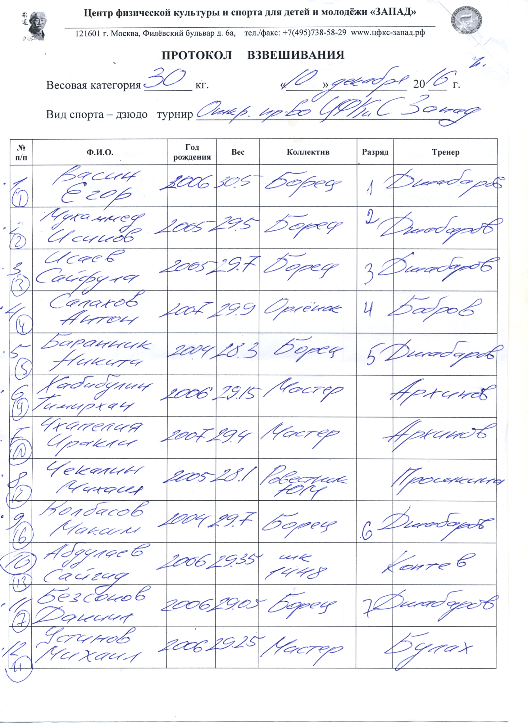 10 декабря 2016 г. Открытое первенство ЦФКиС «Запад» |